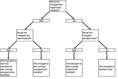 Onderstaand stroomschema geeft voor de meest voorkomende mengsels aan tot welke meststofcategorie een mengsel van meststoffen behoort.